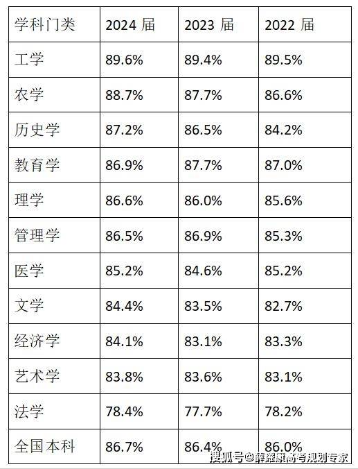 从学科分布来看,不类结业生的就业落实环境差别显著。工学门类继续连结领先,2024届结业去向落实率为89。6%;农学取汗青学门类紧随其后,且近三届呈现较着上升趋向,别离从2022届的86。6%、84。2%提拔至2024届的88。7%和87。2%。教育学门类2024届落实率为86。9%,略低于2023届的87。7%。而部门人文社科类学科结业生就业压力相对较大,、艺术学、经济学、文学2024届的落实率别离为78。4%、83。8%、84。1%和84。4%,全体靠后。