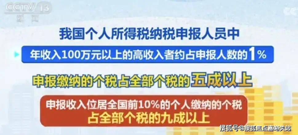年收入100万元以上的高收入者约占申报人数的1%,但这部门人申报缴纳的个税占全数个税的五成以上。